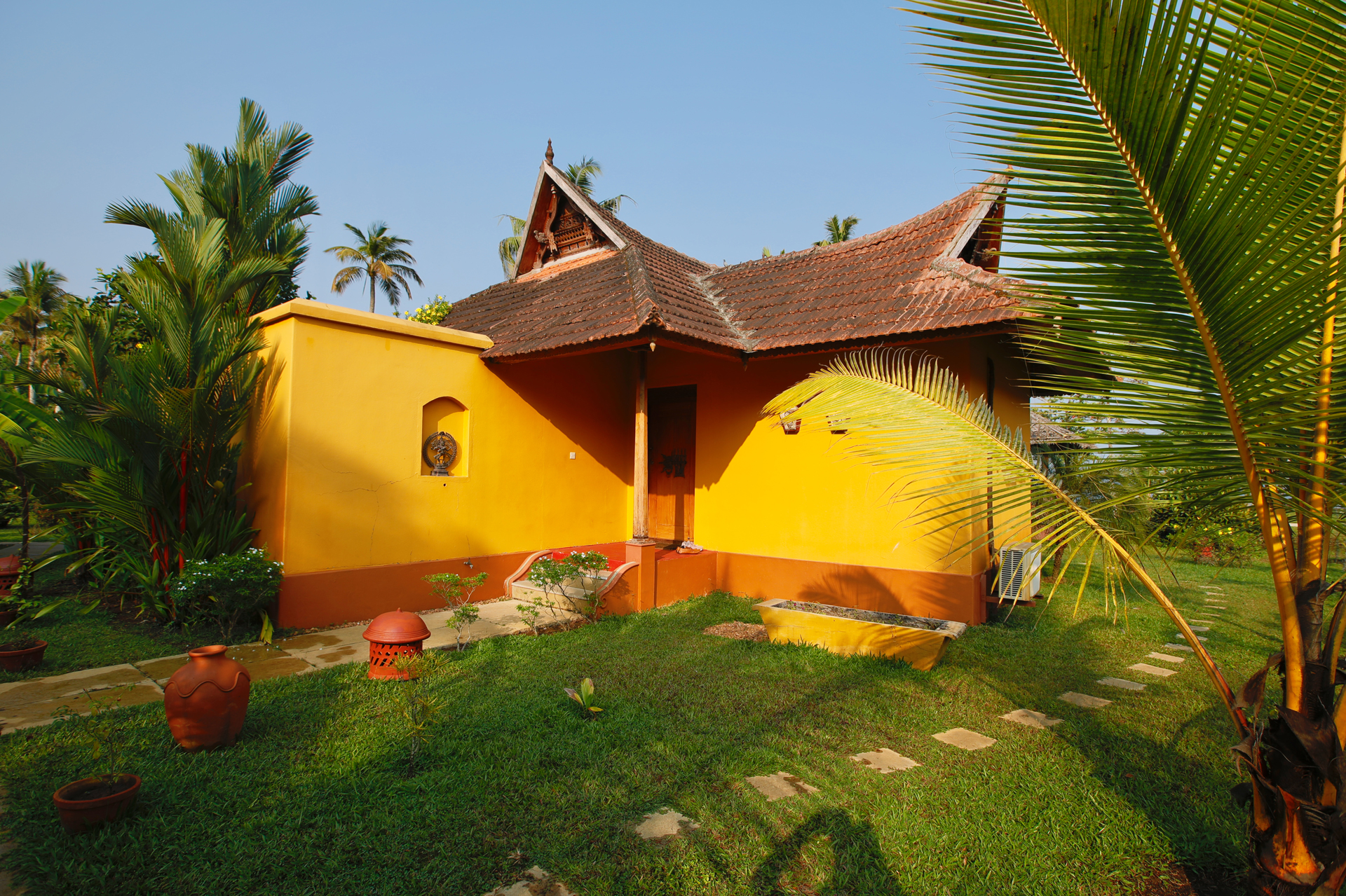 Built in traditional style but with modern comforts Ameya is your perfect spot to explore and enjoy the best of the backwaters. An eco friendly boutique property with a lovely pool offering stay in four tastefully done spacious and airy suites Ameya is perhaps the best boutique villa in Alleppey. With an eye for detail and thought given to all aspects of the property, Ameya was created by Istvan and Veronique the French owners and one of the best known architects of Kerala, Ramesh Tharakan..A tropical garden, spacious lawns, poolside seating and pavilions in the grounds will all make your stay at Ameya a magical experience. Fully serviced by our team of experienced staff you will be pampered as you should be on your holiday!
